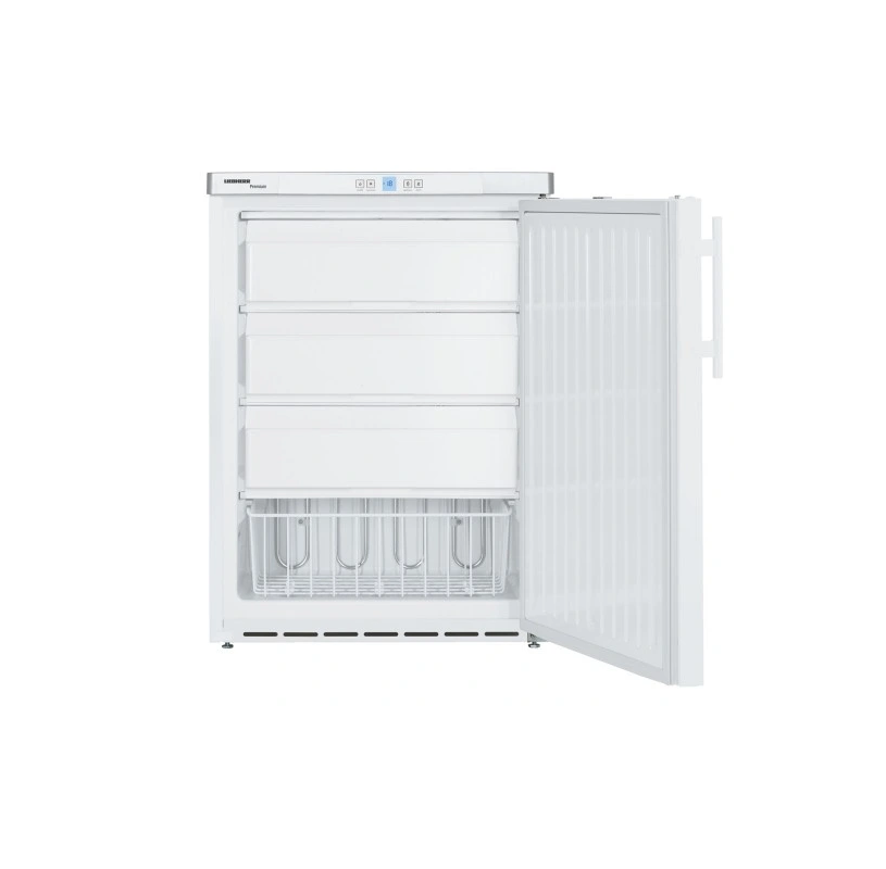 Zamrażarka Liebherr GGU 1500 to model stołowy z płynną regulacją temperatury do -26°C. Trzy przesuwne kosze oferują wysokość użytkową 15 cm, krótszy kosz na dole ma wysokość 17 cm. Dzięki cyfrowemu wyświetlaczowi temperatury zawsze jesteś informowany o stopniu wychłodzenia.