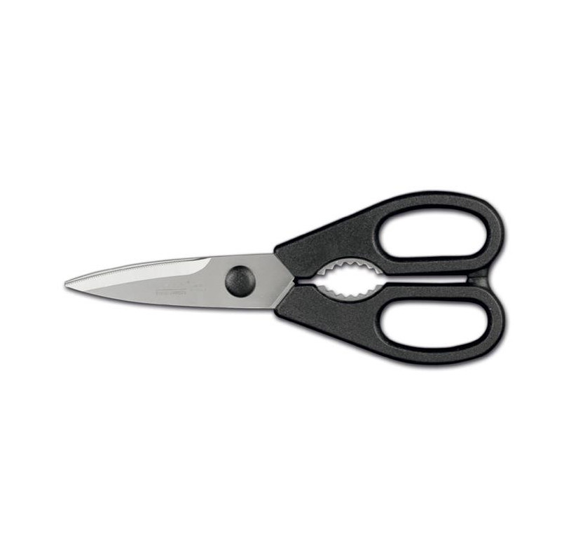 Nożyce kuchenne marki Ambrogio Sanelli, linia Accessori wykonane są z wysokiej jakości stali nierdzewnej, co zapewnia bardzo długą żywotność produktu i doskonałe parametry pracy. Posiadają rozkładane ostrza, dzięki czemu istnieje możliwość dokładnego ich umycia. Dodatkowo nożyce mogą pełnić funkcję dziadka do orzechów.