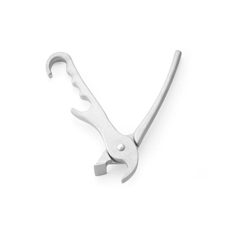 Uniwersalny, aluminiowy chwytak do blach do pizzy.