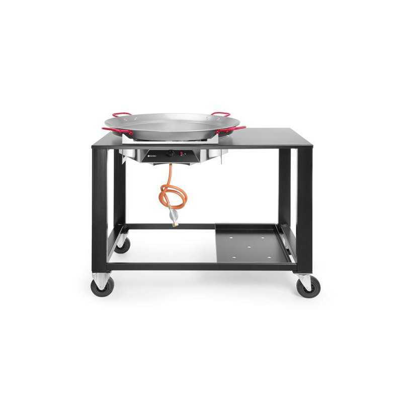 Podstawa ze stali nierdzewnej i patelnia do paelli ze stali walcowanej O 800 mm.