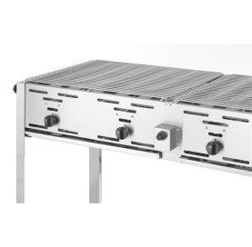 - W zestawie 2 niklowane ruszty oraz emaliowana patelnia pokrywająca połowę grilla (wym. wew. 590x480 mm)