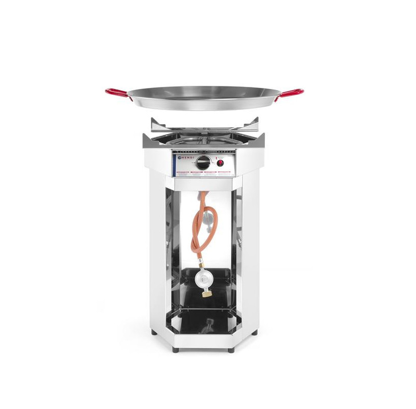 - Wyposażony w termoparę, elektroniczny zapłon oraz przewód gazowy z reduktorem ciśnienia