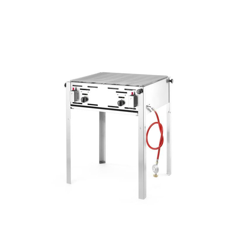 - Ruszt ze stali chromowanej, solidna osłona palnika