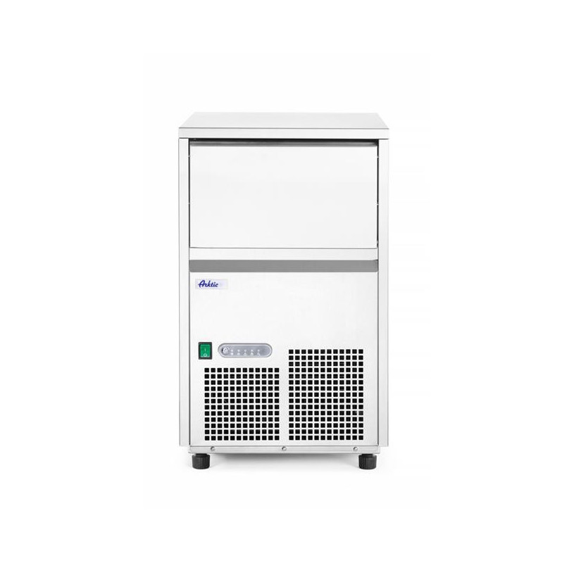 Kostkarka do lodu firmy Arktic produkuje do 22 kg lodu dziennie. Jest wyposażona we wskaźniki ostrzegające o niskim poziomie wody oraz przepełnieniu pojemnika na lód. Dostępne funkcje to auto-rozmrażanie oraz auto-czyszczenie.Obudowa wykonana ze stali nierdzewnej. Produkuje przejrzysty lód, który rozpuszcza się wolniej niż inne rodzaje lodu. Chłodzona powietrzem – chłodzenie statyczne wspomagane wentylatorem. Wskaźniki niskiego poziomu wody i przepełnienia pojemnika na lód. Funkcje automatycznego rozmrażania i automatycznego czyszczenia. Pojemność pojemnika na lód: 6 kg. Zdolność produkcyjna: 22 kg/24 h. Czynnik chłodniczy: R290.