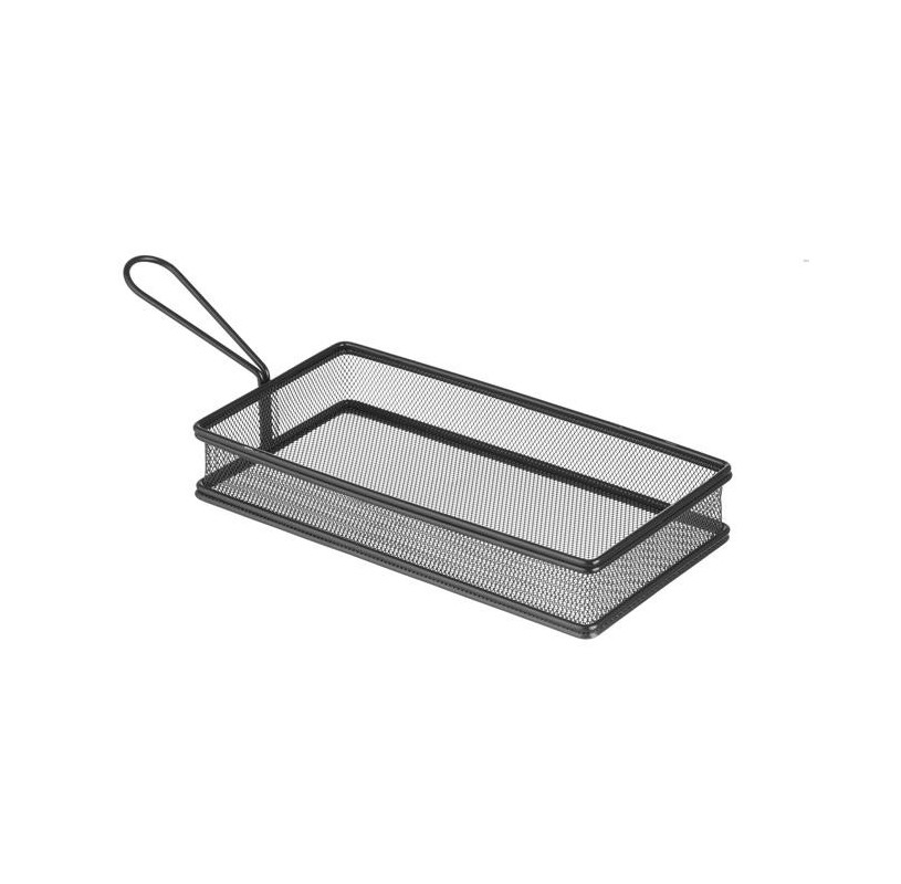 Koszyk miniaturowy do smażonych przekąsek wykończony czarnym, matowym pokryciem.