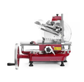 Krajalnica ręczna RETRO 300 firmy HENDI to włoskie urządzenie, które wyróżnia się swoim niebanalnym, tradycyjnym designem w stylu retro i wyjątkowym czerwonym kolorem. Regulacja grubości krojenia pozwala łatwo uzyskać pożądane rezultaty – idealnie cienkie lub grubsze plastry bez względu na rodzaj produktu, czy to wędlina, czy to twardy ser. Dzięki wbudowanej ostrzałce urządzenie zawsze oferuje 100% wysokiej jakości krojenia. Ręcznie złożona, wyprodukowana we Włoszech. Wyjątkowy, luksusowy wzór w stylu retro. Manualna, na korbkę – może być używana w miejscach, które nie mają podłączenia do prądu. Obudowa wykonana z aluminium. Ostrze wykonane ze stali nierdzewnej. Wbudowana ostrzałka zapewnia stałą skuteczność tarczy tnącej. Regulacja grubości krojenia: od 0 do 2,5 mm (9 pozycji). Orientacyjny maks. wymiar krojonego produktu: 230x180 mm.