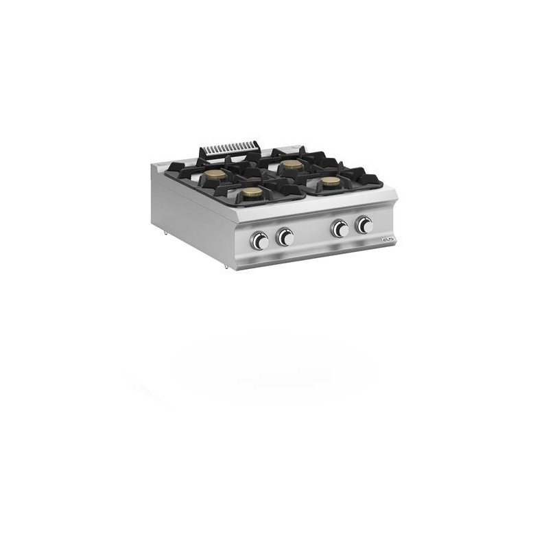 - Zdejmowane palniki z niklowanego żeliwa, z mosiężnymi koronami i samostabilizującym się płomieniem