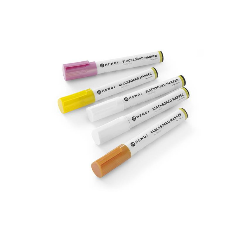 Markery kredowe ścięta końcówka 6mm, żółty, różowy, brązowy, 2 x biały - zestaw 5 szt.