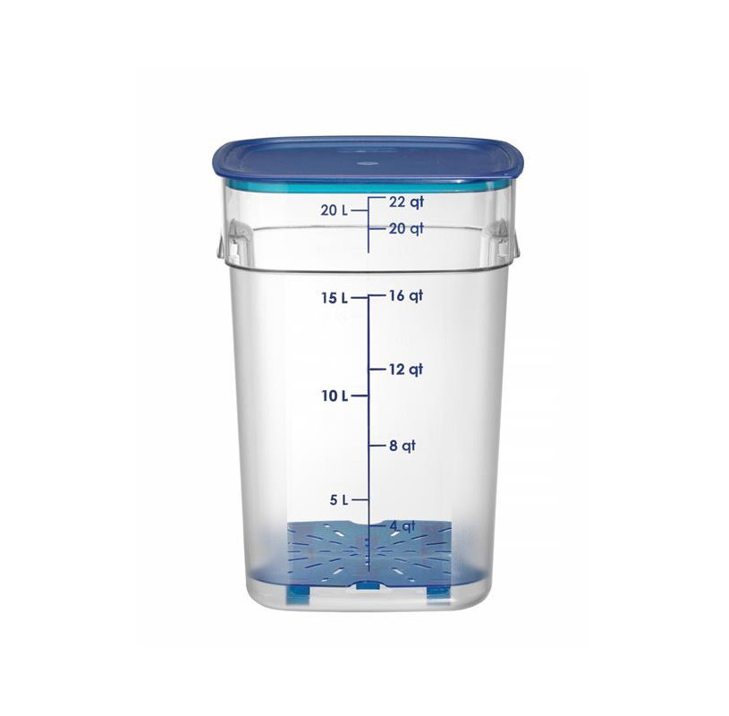 Pojemnik na żywność CamSquares® Fresh Pro firmy Cambro to wielorazowe i przyjazne środowisku rozwiązanie pozwalające na wydłużenie czasu przydatności żywności. Nadaje się do mokrych i suchych produktów. Jest idealny do przechowywania ziół i przypraw, warzyw, mięs, owoców morza czy płynów. Wykonanie z poliwęglanu, materiału odpornego na odbarwianie się, kwasy spożywcze i zapachy, sprawia, że pojemnik jest niezwykle wytrzymały i tym samym doskonale się sprawdzi w profesjonalnych kuchniach. Teksturowana powierzchnia z boku, zaokrąglone rogi i ergonomiczne uchwyty zwiększają wygodę użytkowania. Pokrywki są sprzedawane oddzielne (dostępne w HENDI).