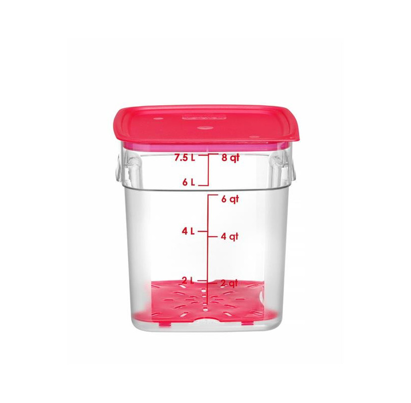 Pojemnik na żywność CamSquares® Fresh Pro firmy Cambro to wielorazowe i przyjazne środowisku rozwiązanie pozwalające na wydłużenie czasu przydatności żywności. Nadaje się do mokrych i suchych produktów. Jest idealny do przechowywania ziół i przypraw, warzyw, mięs, owoców morza czy płynów. Wykonanie z poliwęglanu, materiału odpornego na odbarwianie się, kwasy spożywcze i zapachy, sprawia, że pojemnik jest niezwykle wytrzymały i tym samym doskonale się sprawdzi w profesjonalnych kuchniach. Teksturowana powierzchnia z boku, zaokrąglone rogi i ergonomiczne uchwyty zwiększają wygodę użytkowania. Pokrywki są sprzedawane oddzielne (dostępne w HENDI).