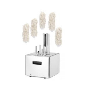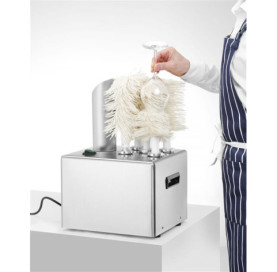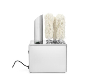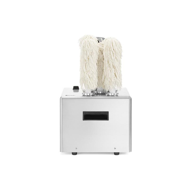 Polerka do szkła firmy HENDI z łatwością osusza i poleruje świeżo umyte szklanki za pomocą ciepła. Jest wyposażona w 5 wymiennych szczotek z włosiem z mikrofibry, zapewniających wysoką moc polerowania. Szczotki błyskawicznie usuwają ślady po wodzie i mogą wypolerować do 330 szklanek na godzinę.