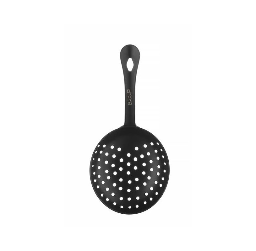 Sitko barmańskie Julep firmy BarUp to klasyczne narzędzie barmańskie, zaprojektowane tak, by pasować idealnie do szklanic barmańskich. Szczególnie często stosowane do przygotowywania prostych drinków z lodem, ponieważ doskonale zatrzymuje duże kawałki kruszonego lodu, owoców i ziół. Wykonane ze stali nierdzewnej. Przeznaczone do odcedzania dużych kawałków lodu, owoców i ziół. Posiada uchwyt z otworem do zawieszeniaCzarna powłoka malowana proszkowo. Nie nadaje się do mycia w zmywarce.
